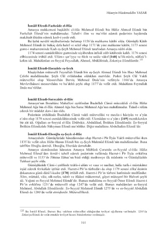 125 Bu İsmâil Efendi, Dursun Bey vakfının mütevellisi olduğundan tevliyet oğullarına verilmişdir. 1210’da