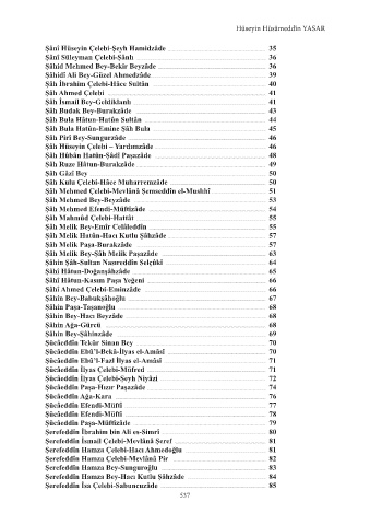 Şânî Hüseyin Çelebi-Şeyh Hamidzâde ............................................. 35 35