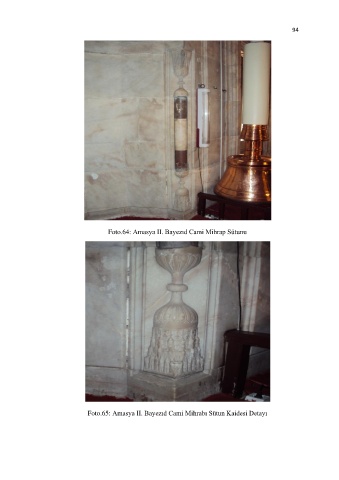 94 Foto.64: Amasya II. Bayezıd Cami Mihrap Sütunu Foto.65: Amasya II. Bayezıd Cami Mihrabı Sütun Kaidesi Detayı