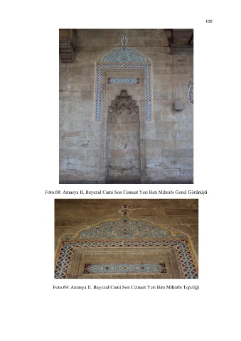 100 Foto.68: Amasya II. Bayezıd Cami Son Cemaat Yeri Batı Mihrabı Genel Görünüşü Foto.69: Amasya II. Bayezıd Cami Son Cemaat Yeri Batı Mihrabı Tepeliği