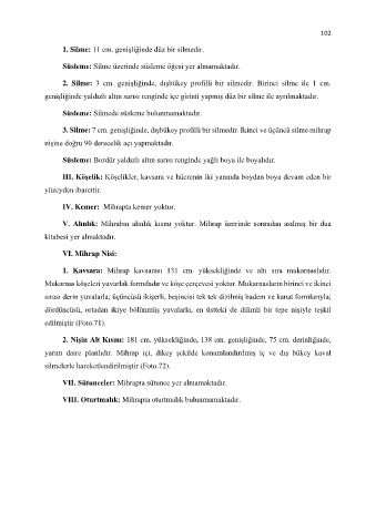 3. Silme: 7 cm. genişliğinde, dışbükey profilli bir silmedir. İkinci ve üçüncü silme mihrap