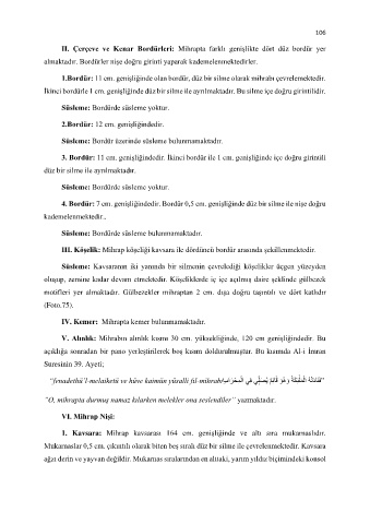 II. Çerçeve ve Kenar Bordürleri: Mihrapta farklı genişlikte dört düz bordür yer