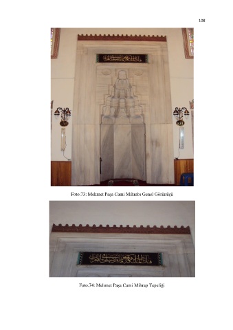 108 Foto.73: Mehmet Paşa Cami Mihrabı Genel Görünüşü Foto.74: Mehmet Paşa Cami Mihrap Tepeliği