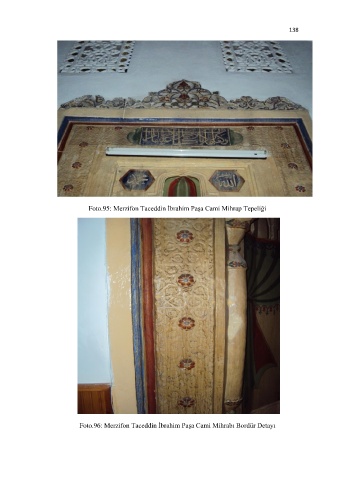 138 Foto.95: Merzifon Taceddin İbrahim Paşa Cami Mihrap Tepeliği Foto.96: Merzifon Taceddin İbrahim Paşa Cami Mihrabı Bordür Detayı