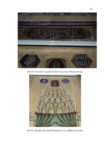 139 Foto.97: Merzifon Taceddin İbrahim Paşa Cami Mihrap Alınlığı Foto.98: Merzifon Taceddin İbrahim Paşa Cami Mihrap Kavsarası