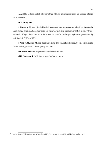 VII. Sütunceler: Mihrapta sütunce bulunmamaktadır.