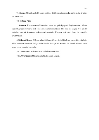 VII. Sütunceler: Mihrapta sütunce bulunmamaktadır.