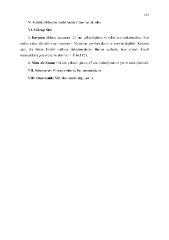 VII. Sütunceler: Mihrapta sütunce bulunmamaktadır.