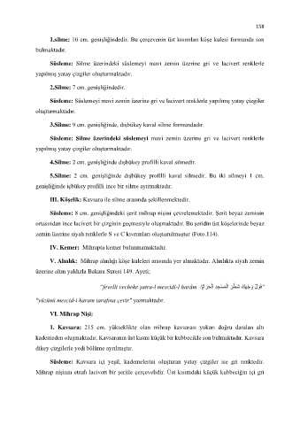 IV. Kemer: Mihrapta kemer bulunmamaktadır.
