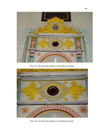 184 Foto.133: Merzifon Hacı Hasan Cami Mihrap Tepeliği Foto.134: Merzifon Hacı Hasan Cami Mihrap Alınlığı