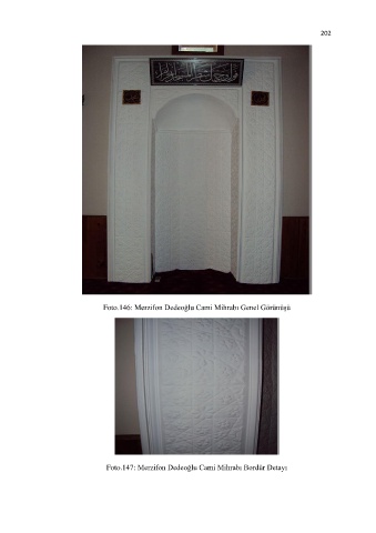 202 Foto.146: Merzifon Dedeoğlu Cami Mihrabı Genel Görünüşü Foto.147: Merzifon Dedeoğlu Cami Mihrabı Bordür Detayı