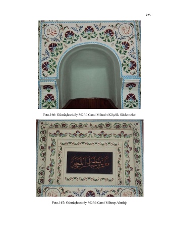 225 Foto.166: Gümüşhacıköy Müftü Cami Mihrabı Köşelik Süslemeleri Foto.167: Gümüşhacıköy Müftü Cami Mihrap Alınlığı