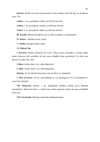 III. Köşelik: Mihrap köşeliği kavsara ile silme arasında yer almamaktadır.
