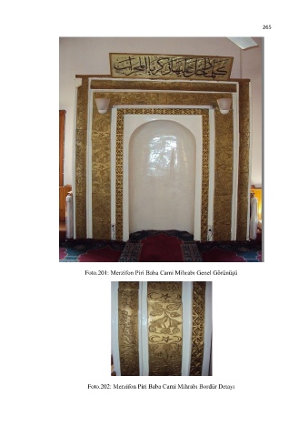 265 Foto.201: Merzifon Piri Baba Cami Mihrabı Genel Görünüşü Foto.202: Merzifon Piri Baba Cami Mihrabı Bordür Detayı