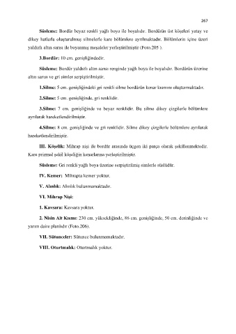 Süsleme: Bordür beyaz renkli yağlı boya ile boyalıdır. Bordürün üst köşeleri yatay ve