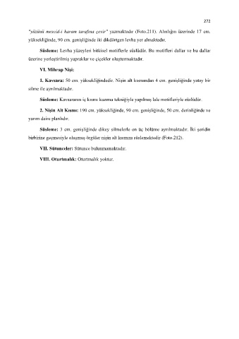 "yüzünü mescid-i haram tarafına çevir" yazmaktadır (Foto.211). Alınlığın üzerinde 17 cm.