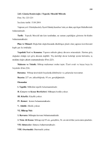 2.63. Gümüş Demircioğlu ( Tepecik) Mescidi Mihrabı