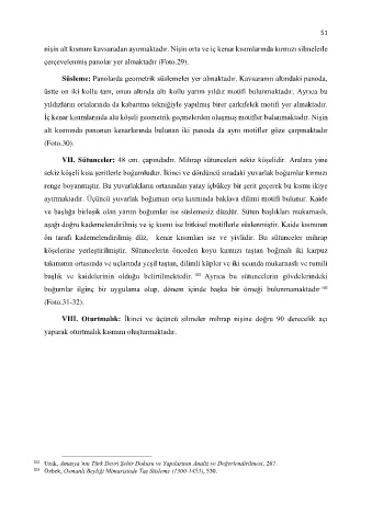 VII. Sütunceler: 48 cm. çapındadır. Mihrap sütunceleri sekiz köşelidir. Aralara yine