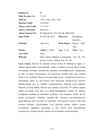 Referans: Ölçer, Sultan Mahmud II Zamanında… Kat. No. 156;