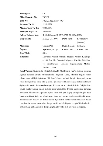 Referans: Darphane Müzesi Osmanlı Madeni Paraları Kataloğu,